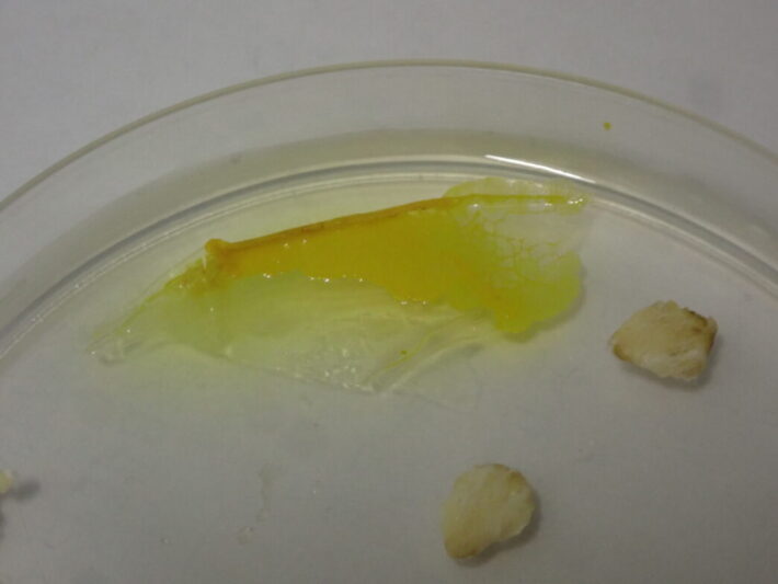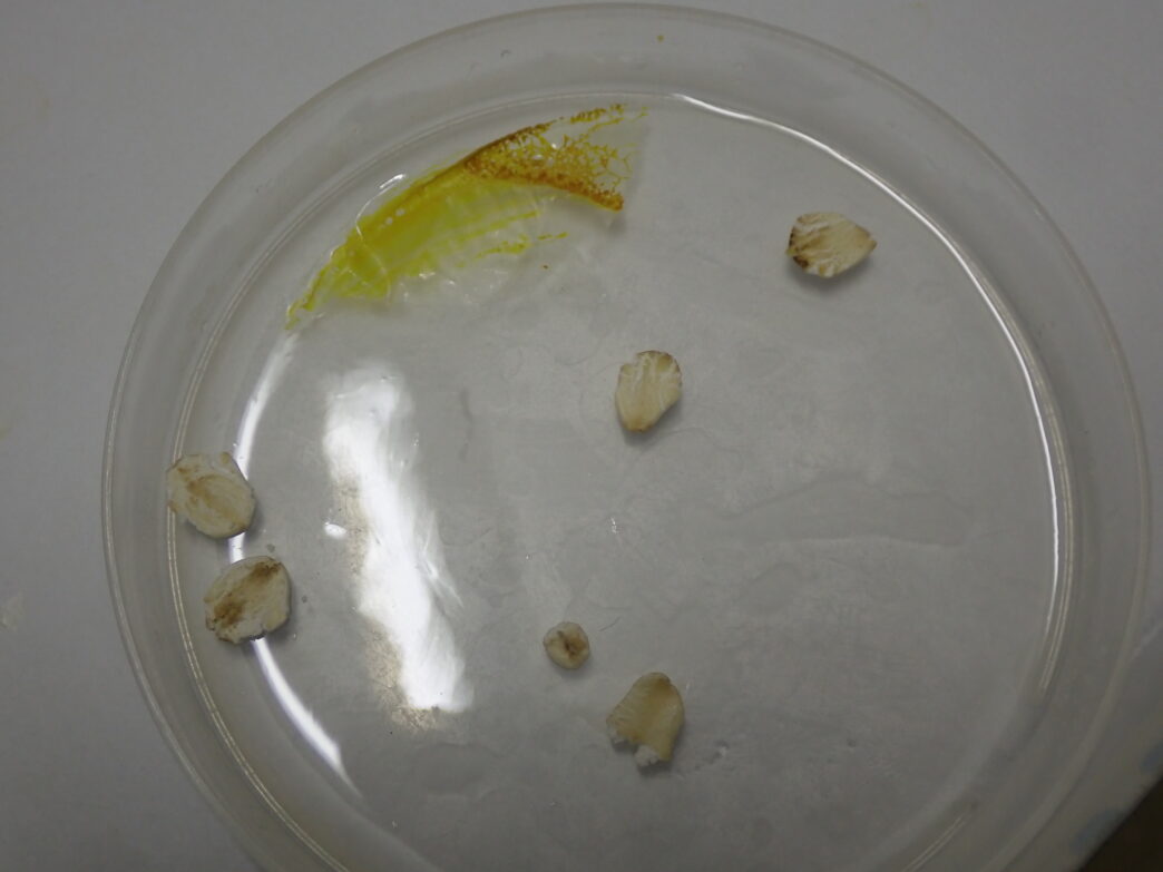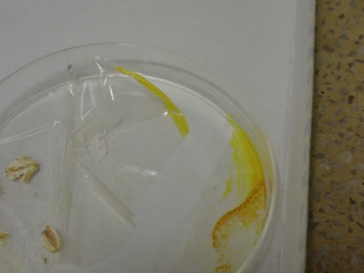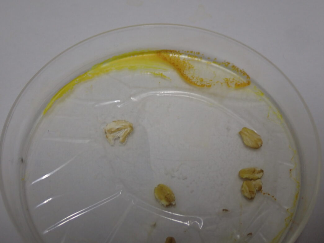 ペラペラになった粘菌 公開日:2025年09月14日 こんにちは閑話猿です。 ある朝シャーレの不備なのか、1つだけ寒天の培地が乾燥してカラカラになっていました。普段は寒天培地を小さなヘラで切り分けるのですが、これはオブラートを触っているような感覚でした。 イタモジホコリは、培地の上で菌核のようになっているようでした。 その一部を新しい培地の上に置き、周囲にオートミールを与えておくと、数時間後には水気を取り戻していました。 乾燥状態から数時間で元に戻るとは、すごい生命力だと関心させられます。