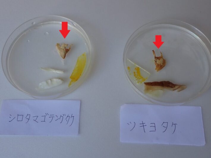 結局のところ、イタモジホコリは2つのキノコに毒があることに気づいています。それはキノコの破片から毒の成分がでており、それを察知しているのでしょうか。単細胞生物だからというのは、イタモジホコリに失礼かもしれませんが、すごい能力ですね。