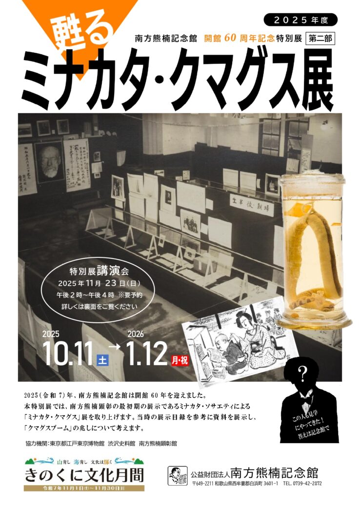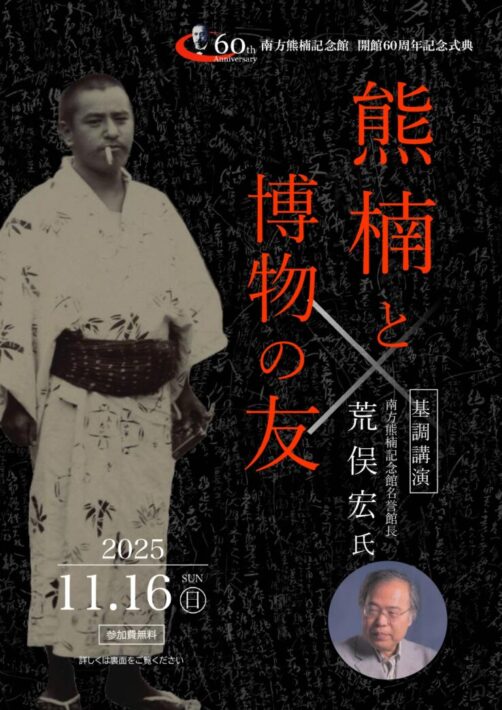 ◯11月16日(日) 南方熊楠記念館 開館60周年記念式典 午後1時30分~午後4時00分 定員300名(先着順・要申込)