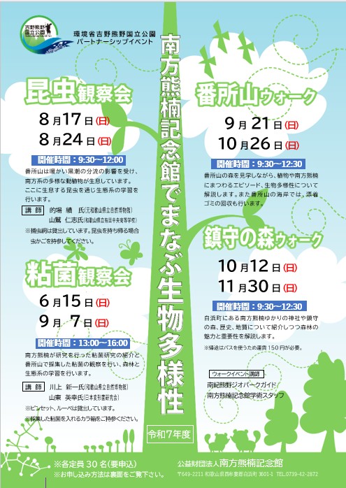 白浜町にある南方熊楠ゆかりの神社や鎮守の森、歴史、地質について紹介しつつ森林の魅力と重要性を解説します。申込みは下記リンク先からできます。