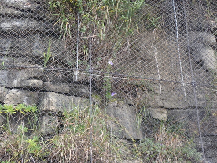 そんな桔梗ですが、ウォークイベント中に番所山以外でも見ることができました。崖の一箇所で花をつけていることがわかります。おそらく、自生しているものではないかとのことでした。