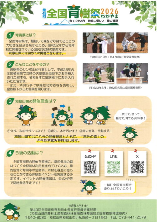 この式典は、令和8(2026)年秋に田辺市と白浜町で開催される第49回全国育樹祭の記念行事になりました。