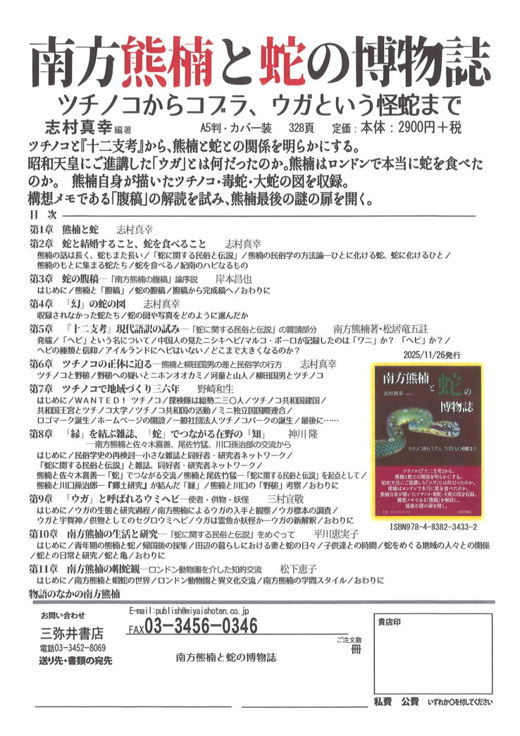 ・志村真幸 編『南方熊楠と蛇の博物誌 ツチノコからコブラ、ウガという怪蛇まで』 三弥井書店 2025年11月26日