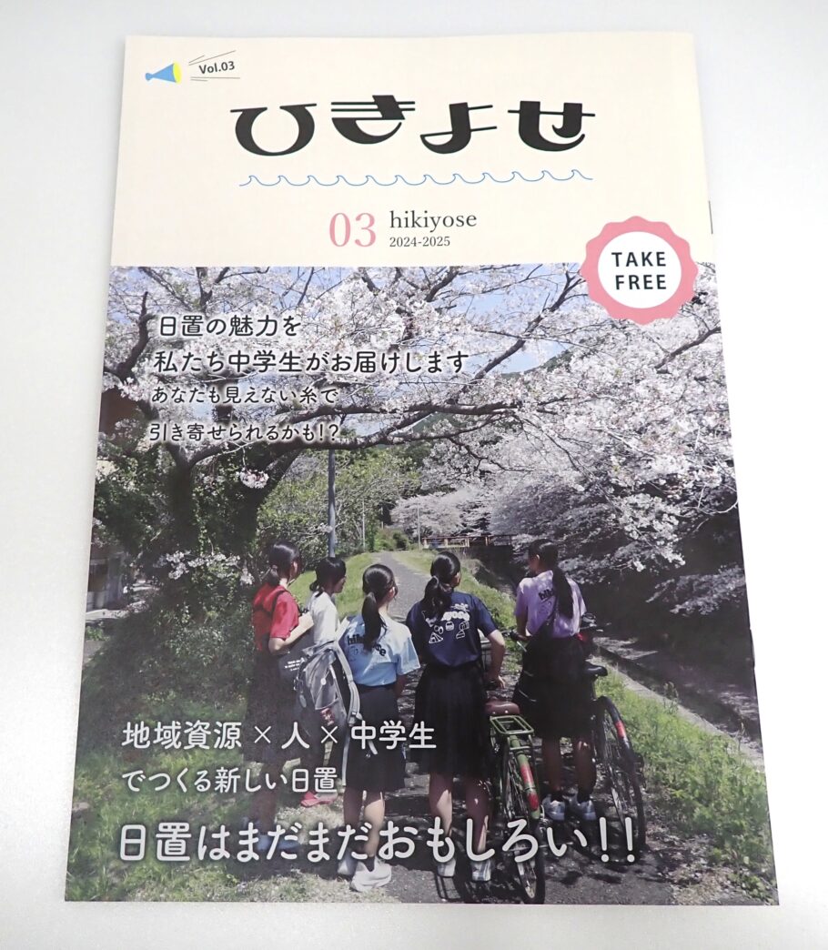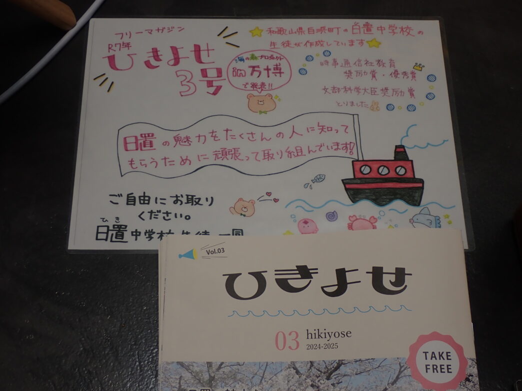 白浜町日置にある日置中学校の生徒が作ったフリーマガジン『ひきよせ』をいただきました。2020年から「活気あふれる日置の町づくり」の学習の一環で、中学生たちが自分たちで町を知るために地元企業や施設を訪問し、取材をして誌面を作っています。