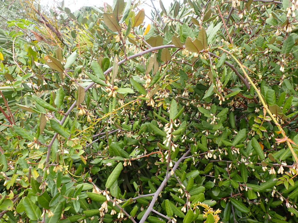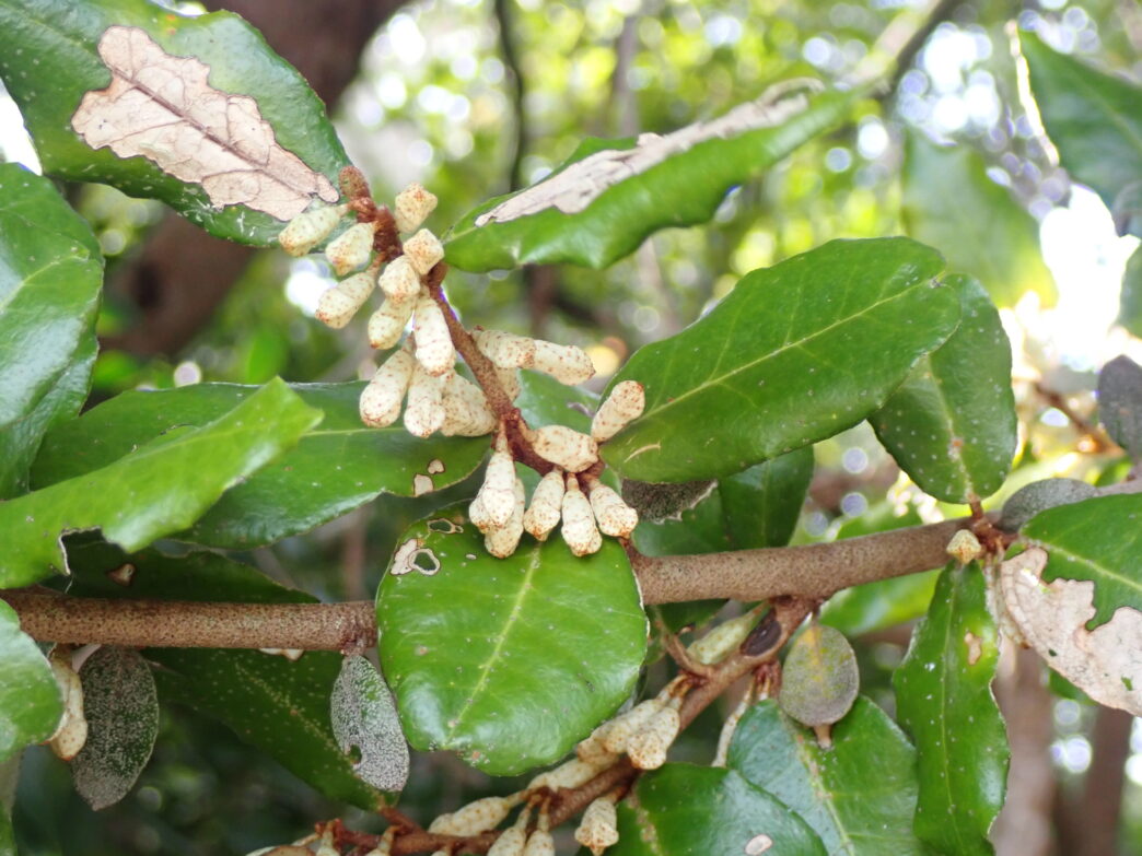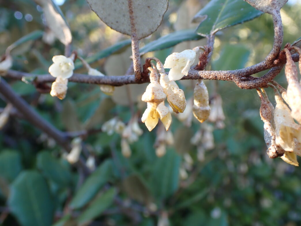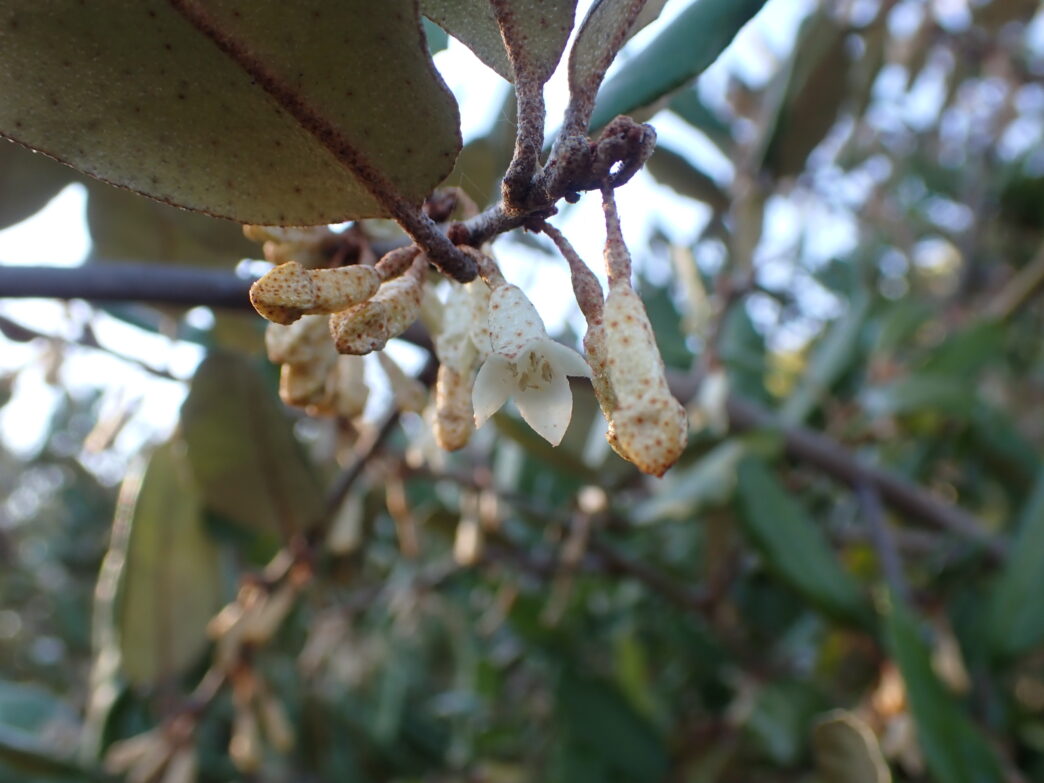 このクリーム色の筒状のものが花で、先端部が開花します。これらの花が受粉して実がつくのは、5月の田植えの準備をする頃になります。