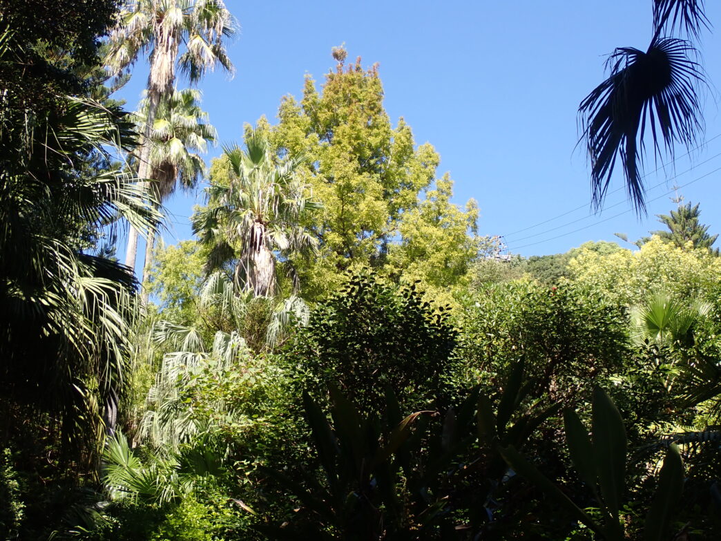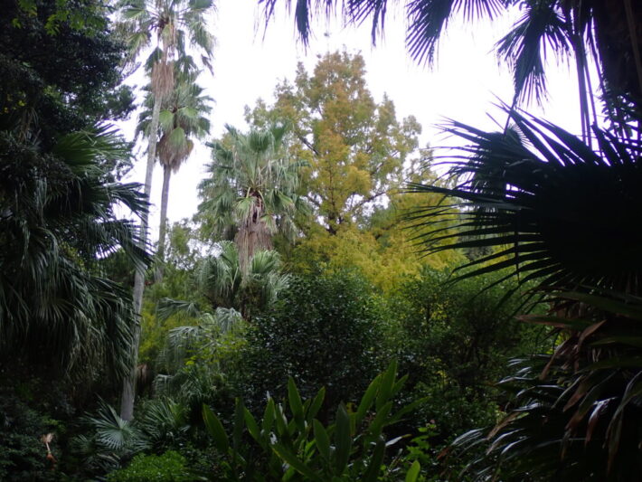 公園を吹きぬける風によって葉も落ち、木の下から空がよく見えています。