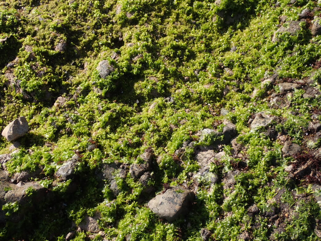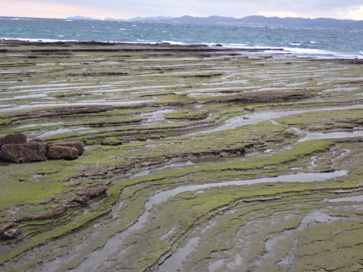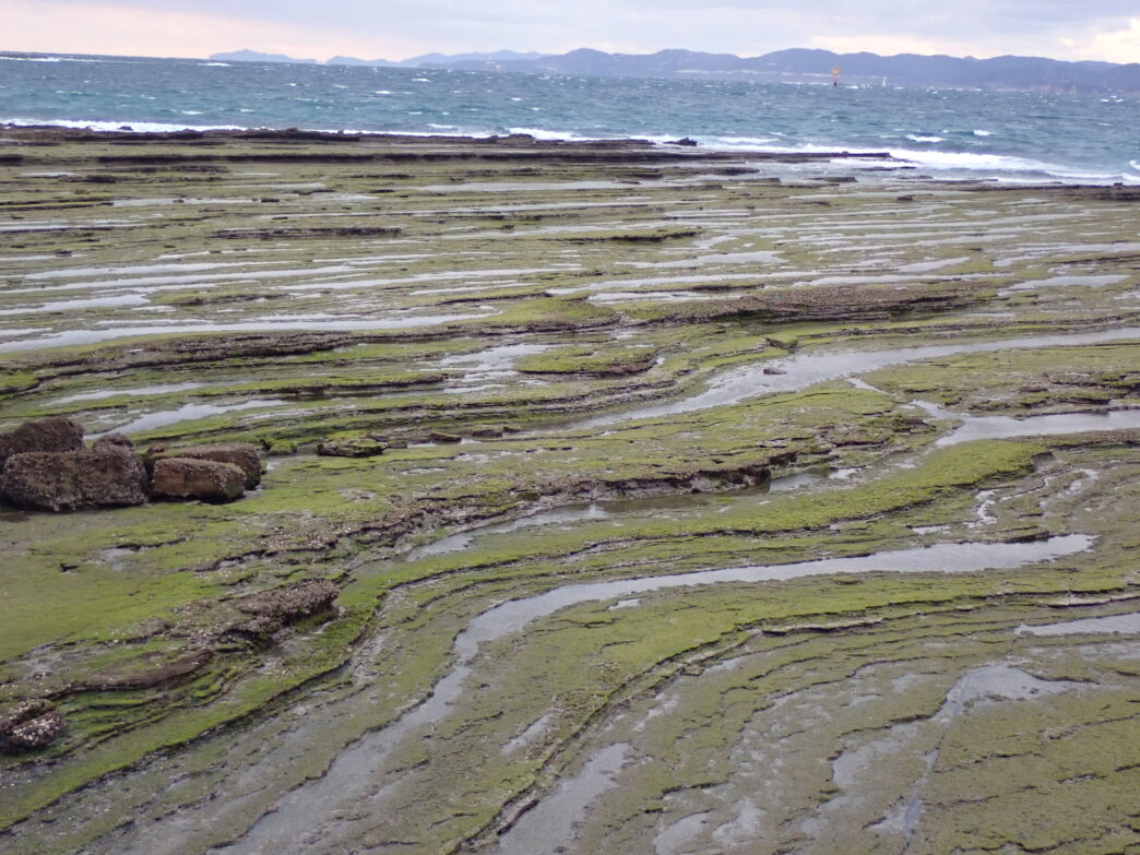磯が緑色になる季節 公開日:2026年02月15日 こんにちは閑話猿です。 番所山周辺の岩礁があおさによって緑色になってきました。あおさは冬から春にかけて旬の海藻です。 荒涼とした岩礁が春の色に変わっていきます。そしてこのあおさを収穫する人も現れる時期ですね。