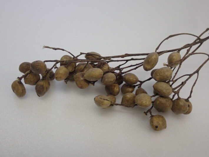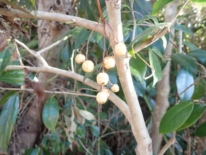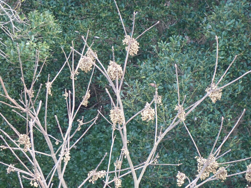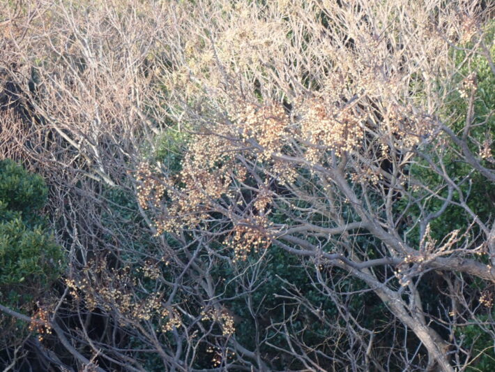 そんななか、まだ木に実を残しているものもあります。当館の新館近くにはハゼやセンダンの木があり、そこにはまだ実が残っています。どちらも人間の食用には適さない実ですが、冬季には鳥たちがついばんでいます。