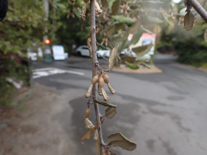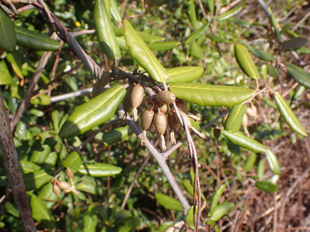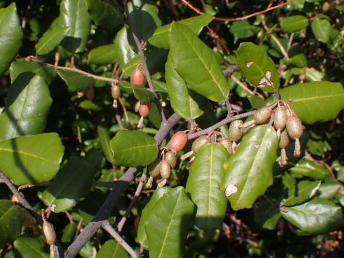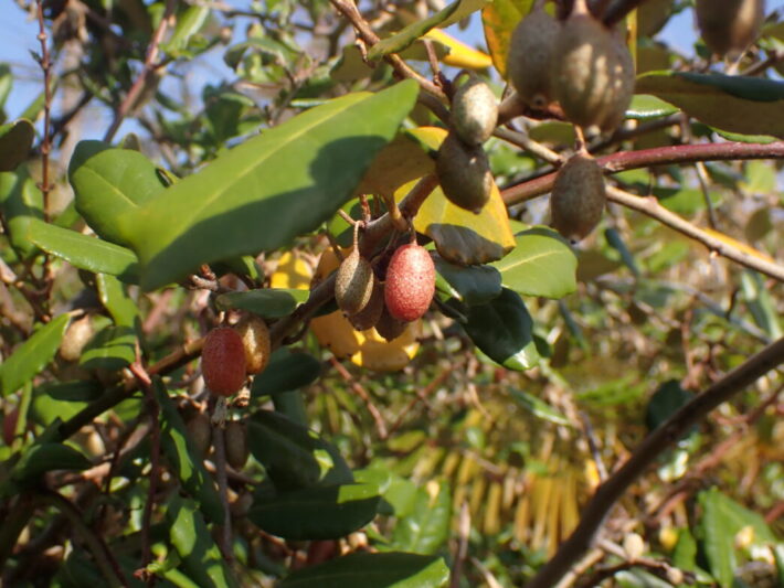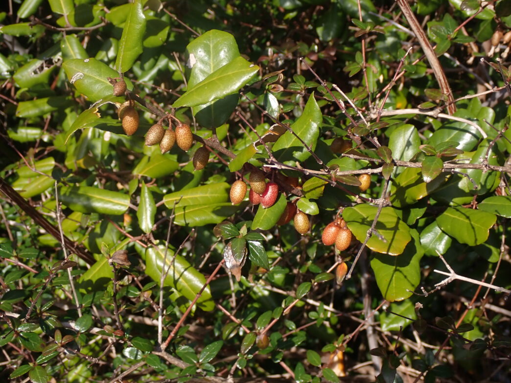 ナワシログミの小さな実 公開日:2026年03月04日 こんにちは閑話猿です。 番所山公園のナワシログミに小さな実がつきました。その名前の通り稲の苗代を用意する時期に実が熟すので「ナワシログミ」の名がつけられています。 昨年の12月中旬にはクリーム色の花がついていました。そこから約2ヶ月で実になっています。 さらに第二駐車場近くのナワシログミの木には、すでに赤みを帯び熟してきている実もありました。紀南の苗代作りは4月には始まるのでしょう。ちょうど良い時期に実が熟しますね。 ナワシログミの花 (2025年12月17日のブログ) ナワシログミの花