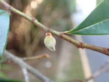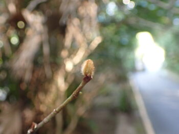 最近気温も高くなり暖かくなってきました。番所山は春の装いに変わってきています。トウオガタマのつぼみは、まだ小さく産毛に包まれています。