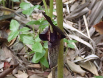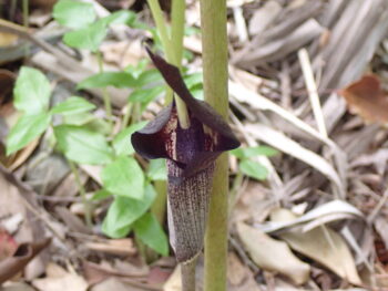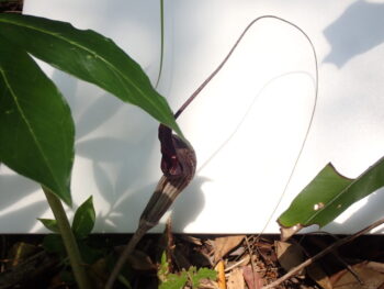 番所山公園では様々な植物が開花しています。そのなかでも花の形状が面白い植物にウラシマソウが挙げられます。
