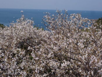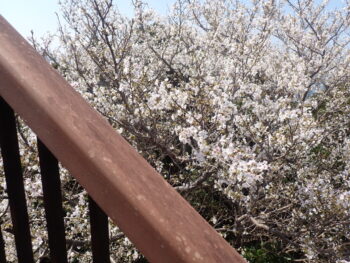 ③南方熊楠記念館の屋上  番所山公園内で開花している桜を俯瞰して見られます。屋上でチェックしてから、散策に行かれるのもよいと思います。