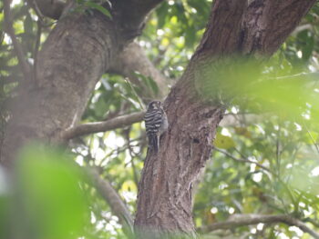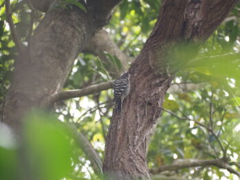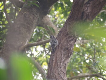 今回撮影できたコゲラは、ウバメガシの幹をドラミングしていました。リズミカルな音を是非お聞きください。