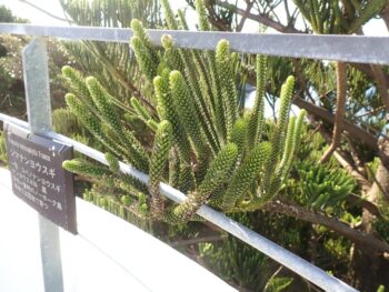 写真2枚目のシマナンヨウスギは、6年前に球果をつけた木です。再び球果をつけることがあるのか観察していきます。